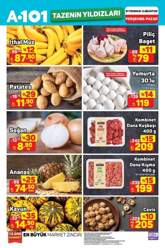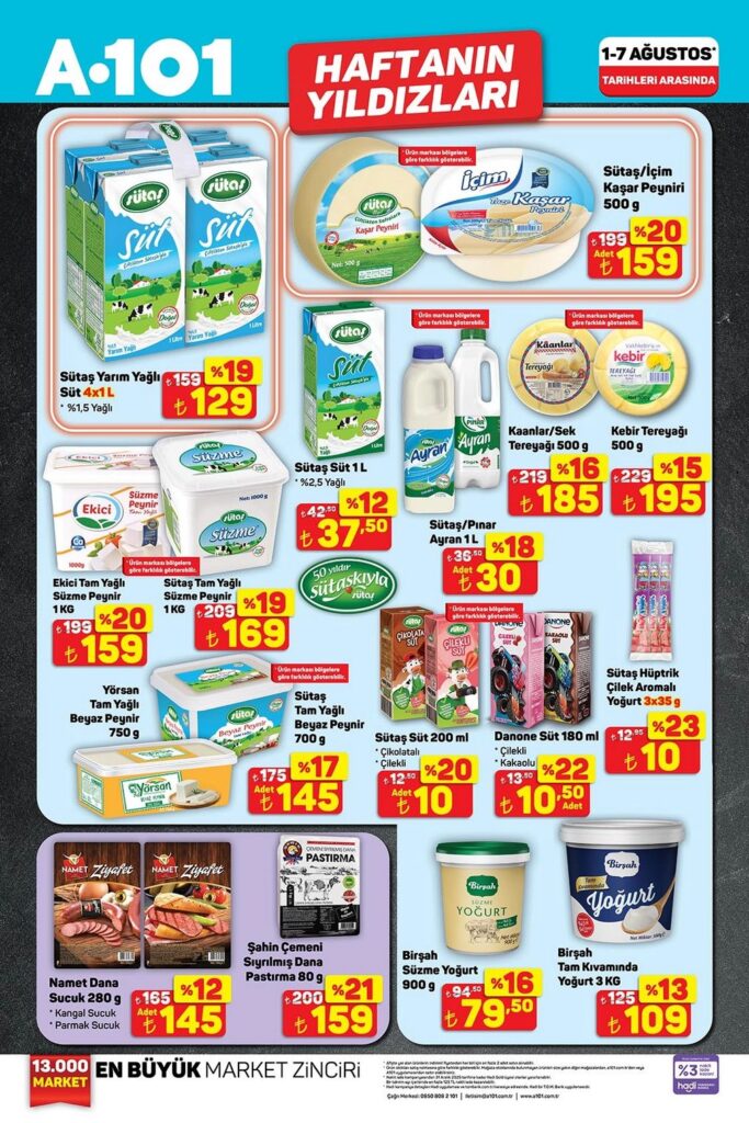 A101 Haftanın Yıldızları aktüel ürünler kataloğu 01-07 Ağustos 2025 tarihleri arasında geçerlidir. A101 broşürü 5 sayfadan oluşmaktadır. Bu haftaki katalog gıda ürünleri ağırlıklı.