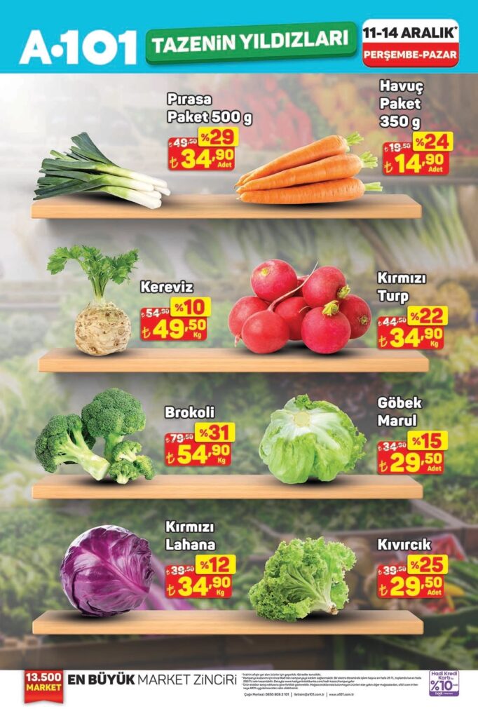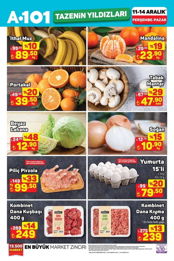 A101 Haftanın Yıldızları aktüel ürünler kataloğu 13-19 Aralık 2025 tarihleri arasında geçerlidir. A101 broşürü 6 sayfadan oluşmaktadır. Bu haftaki katalog gıda ve temizlik ürünleri ağırlıklı