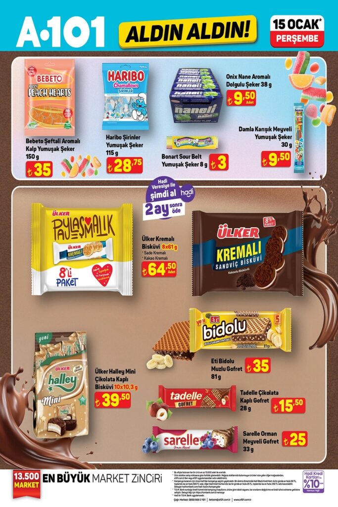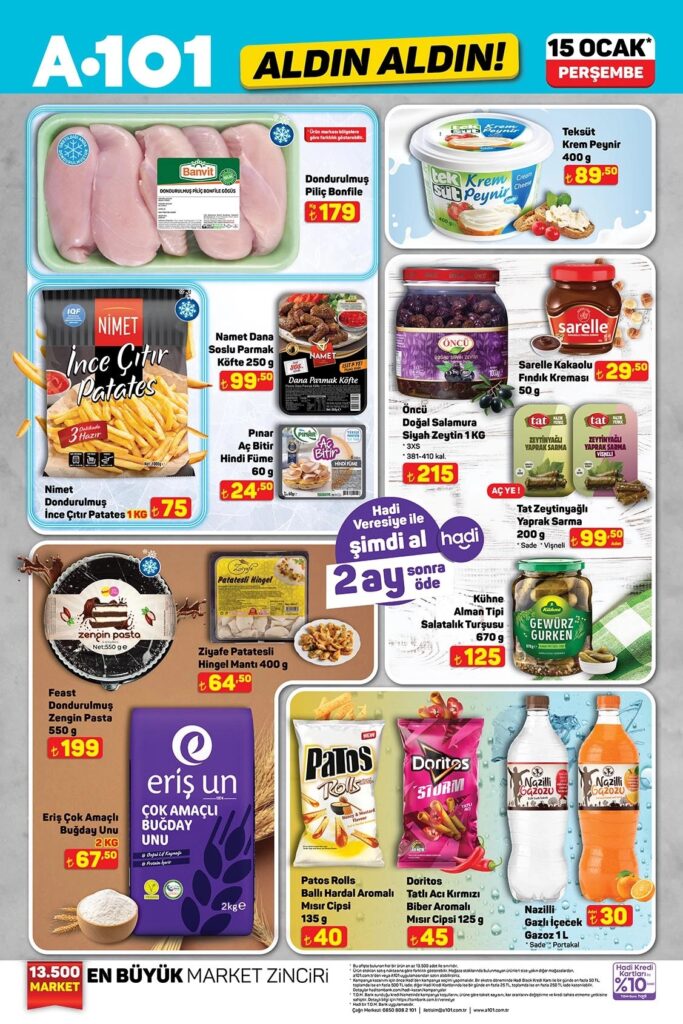 A101 Aldın Aldın aktüel ürünler kataloğu 15 Ocak – 21 Ocak 2026 tarihleri arasında geçerlidir. 13 sayfalık A101 broşüründe gıda, temizlik, elektronik, TV, mutfak ürünleri, oyuncaklar, müzik enstrümanları ürünleri ve elektrikli taşıtlardan onlarca üründe kampanyalı fiyatlar sizi bekliyor. Güncel A101 indirimlerini ve fırsatlarını kaçırmayın!