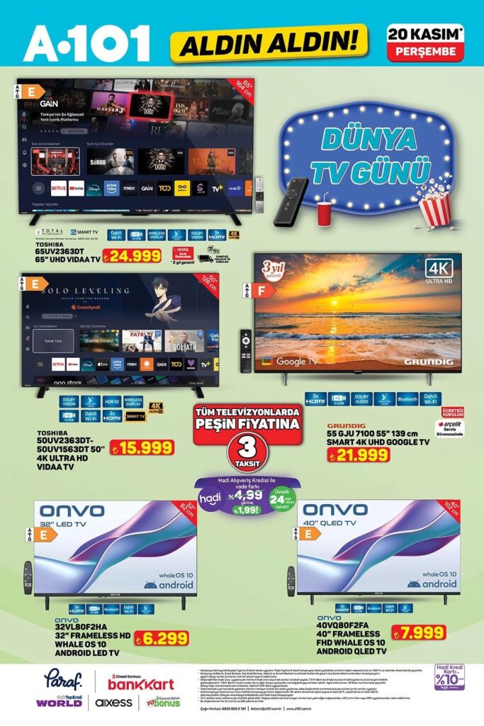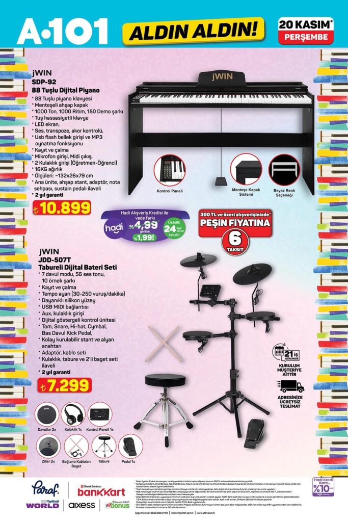 A101 Aldın Aldın aktüel ürünler kataloğu 20-26 Kasım 2025 tarihleri arasında geçerlidir. 16 sayfalık A101 broşüründe gıda, temizlik, elektronik, TV, mutfak ürünleri, müzik enstrümanlar, tekstil ve elektrikli taşıtlardan onlarca üründe kampanyalı fiyatlar sizi bekliyor. Güncel A101 indirimlerini ve fırsatlarını kaçırmayın!