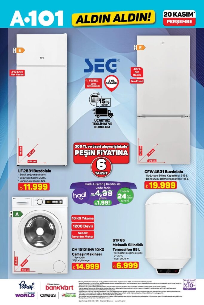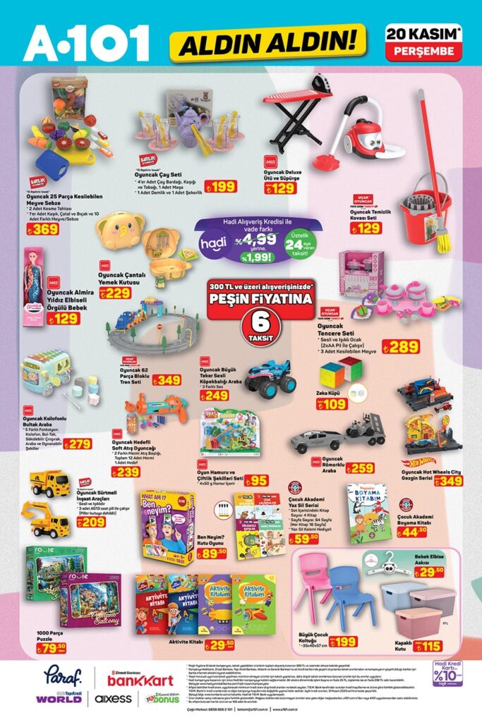 A101 20-26 Kasım Aktüel kataloğu fırsatlarını keşfedin! Bu hafta karavan ve dijital piyanodan beyaz eşyaya, küçük ev aletlerinden mutfak gereçlerine, gıdadan giyime ve yüzlerce oyuncak çeşidine kadar “Aldın Aldın” indirimleri sizi bekliyor.