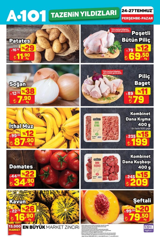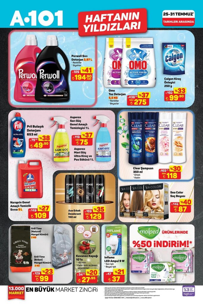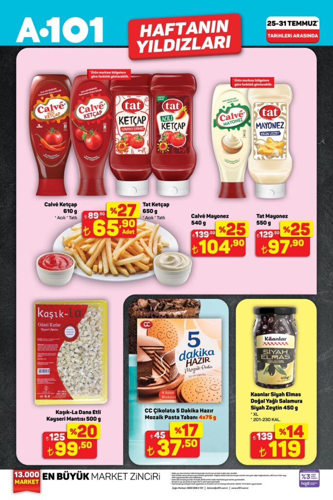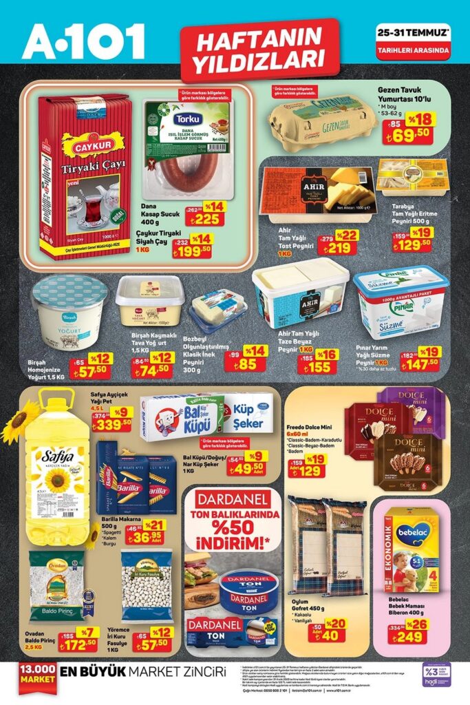 A101 Haftanın Yıldızları aktüel ürünler kataloğu 25-31 Temmuz 2025 tarihleri arasında geçerlidir. A101 broşürü 10 sayfadan oluşmaktadır. Bu haftaki katalog gıda ve kişisel bakım ürünleri ağırlıklı.