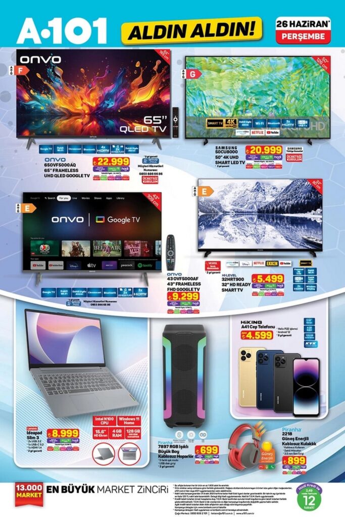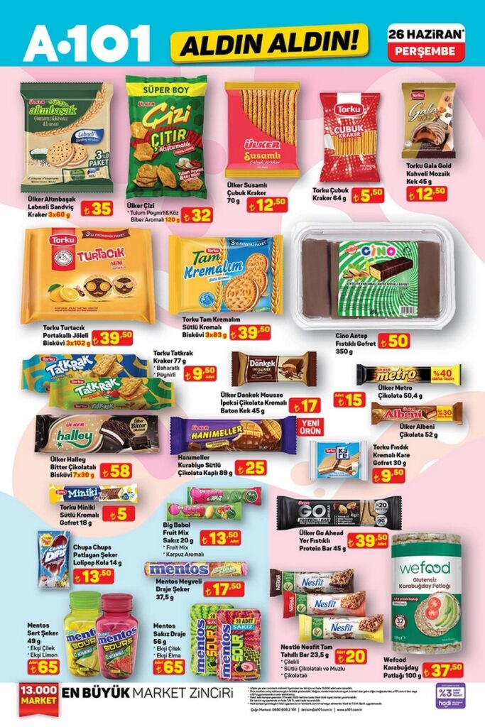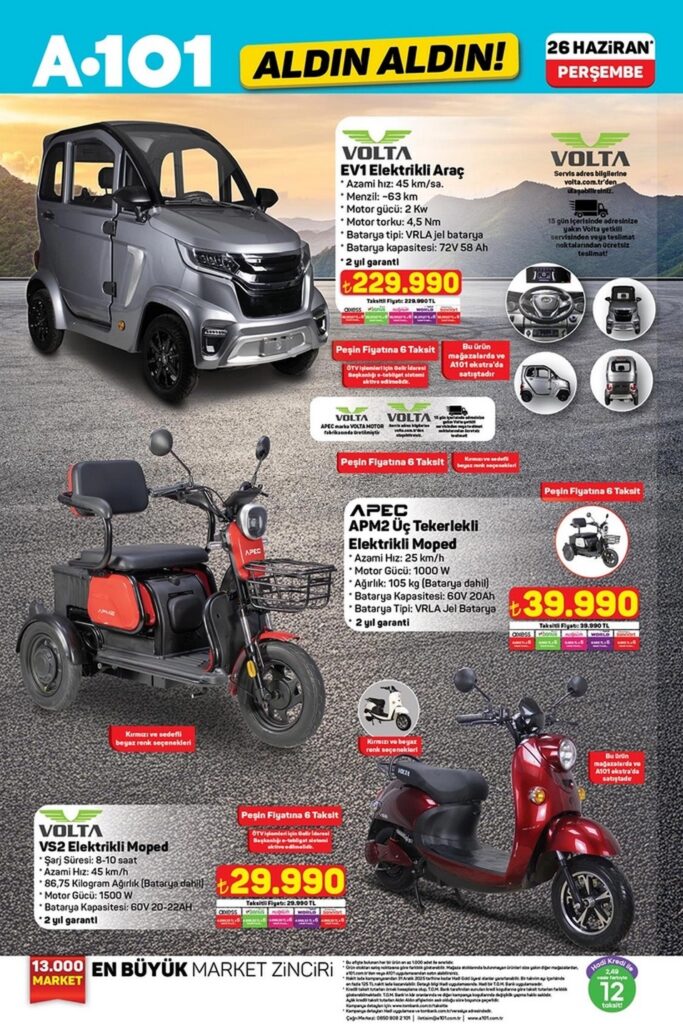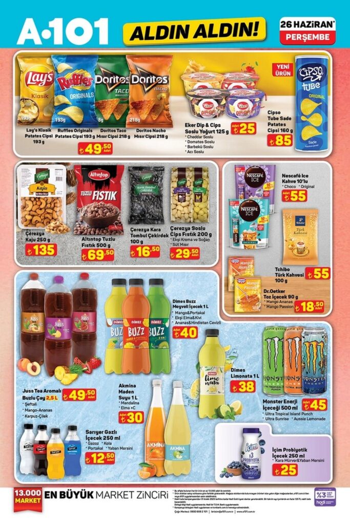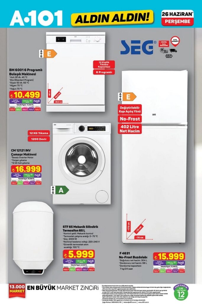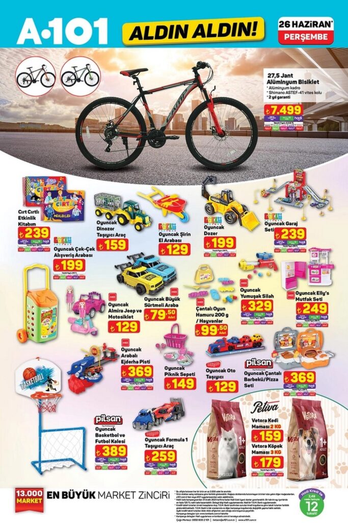 A101 Aldın Aldın aktüel ürünler kataloğu 26 Haziran – 2 Temmuz 2025 tarihleri arasında geçerlidir. A101 broşürü 11 sayfadan oluşmaktadır. Gıdadan elektrikli Motora, oyuncaktan elektronik ürünlere kadar çok geniş bir yelpazede onlarca üründe kampanyalı fiyatlar mevcut.