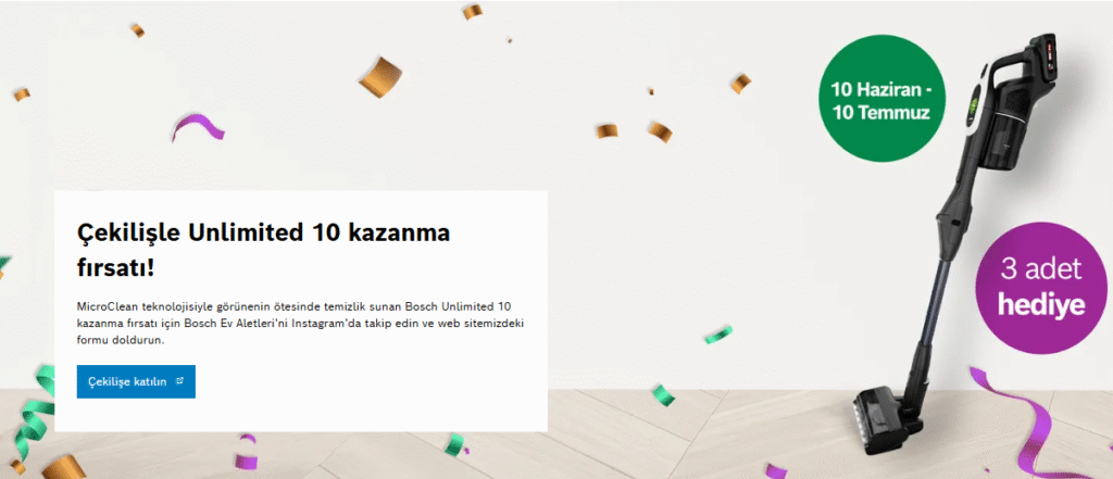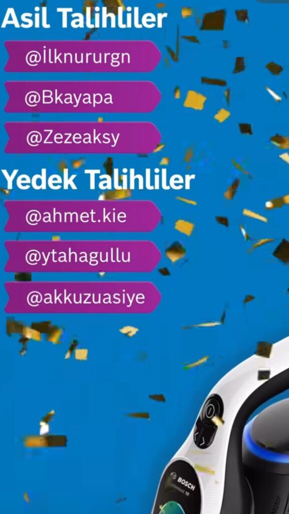 Kazananlar 18 Temmuz 2025 tarihinde web sitemizde ve @boschhometurkiye Instagram hesabında duyurulacaktır.
