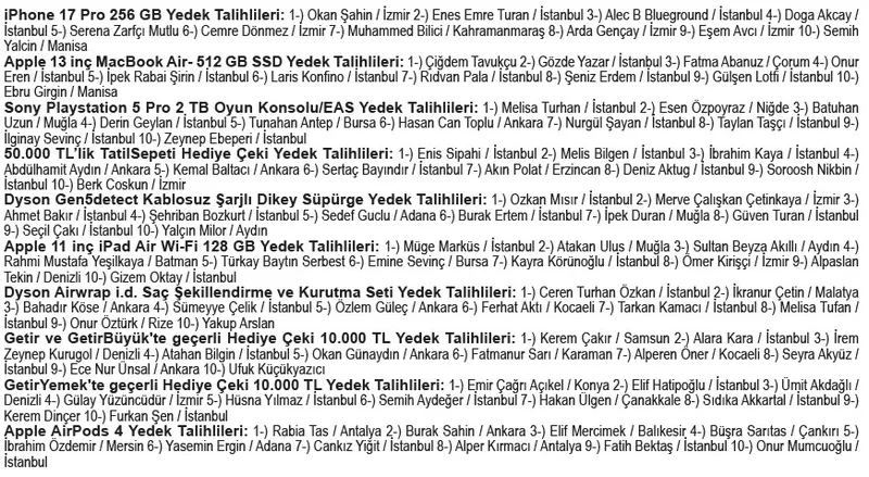 - 10 Kişiye: Apple AirPods 4 (Birim değeri: 7.999 TL)