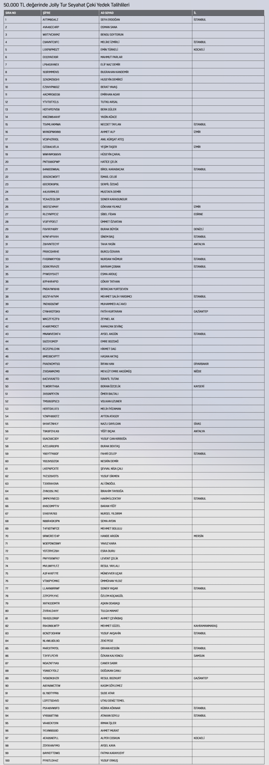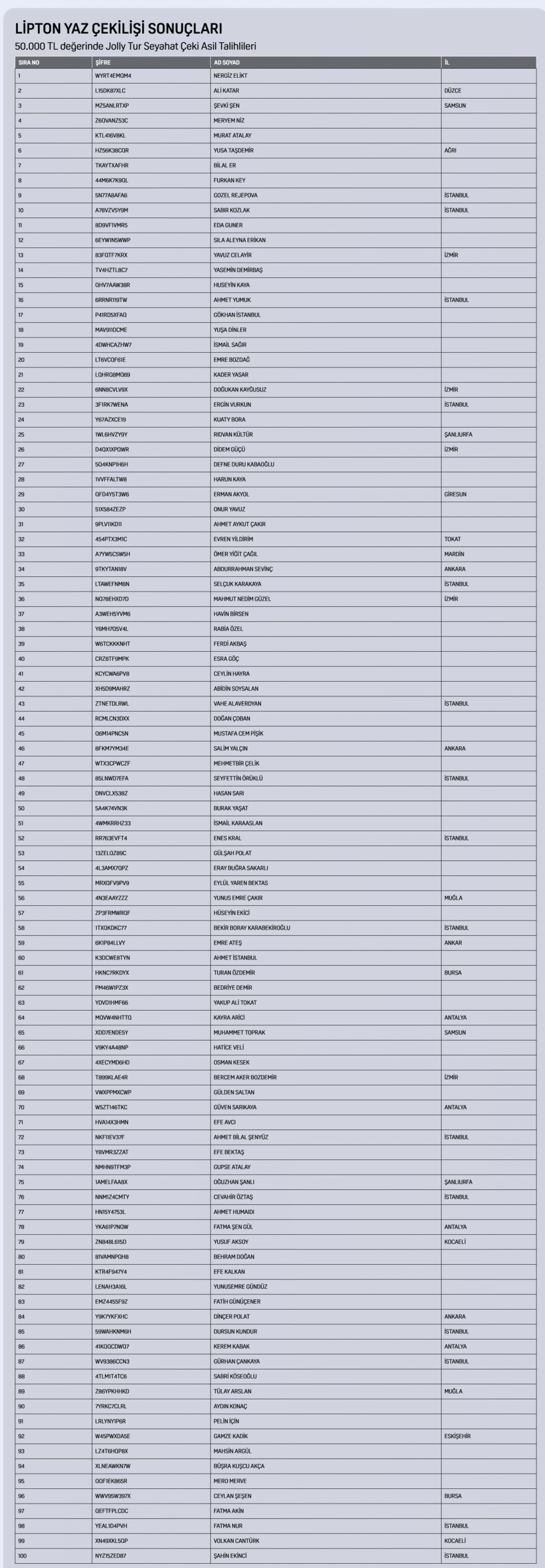 Her 1 şifre, 1 çekiliş hakkı kazandırır.