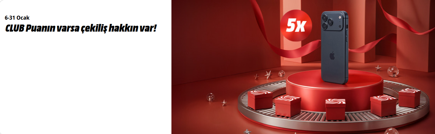 MediaMarkt, CLUB üyelerine özel düzenlediği yeni yıl kampanyasıyla teknoloji tutkunlarını sevindiriyor. 06 Ocak 2026 – 31 Ocak 2026 tarihleri arasında geçerli olan kampanyada, MediaMarkt CLUB üyeleri topladıkları puanları çekiliş hakkına dönüştürerek iPhone 17 Pro kazanma şansı yakalıyor. Hem alışveriş yaparak hem de sadece üye olarak veya iletişim izni vererek puan toplayabileceğiniz bu avantajlı kampanyanın tüm detaylarını sizler için derledik.