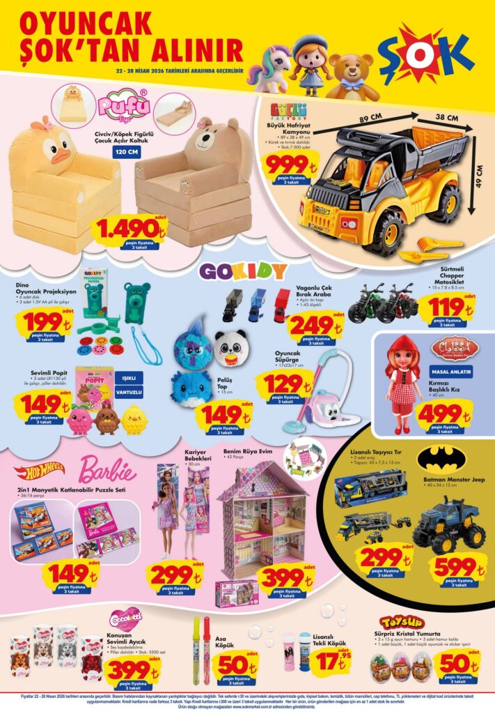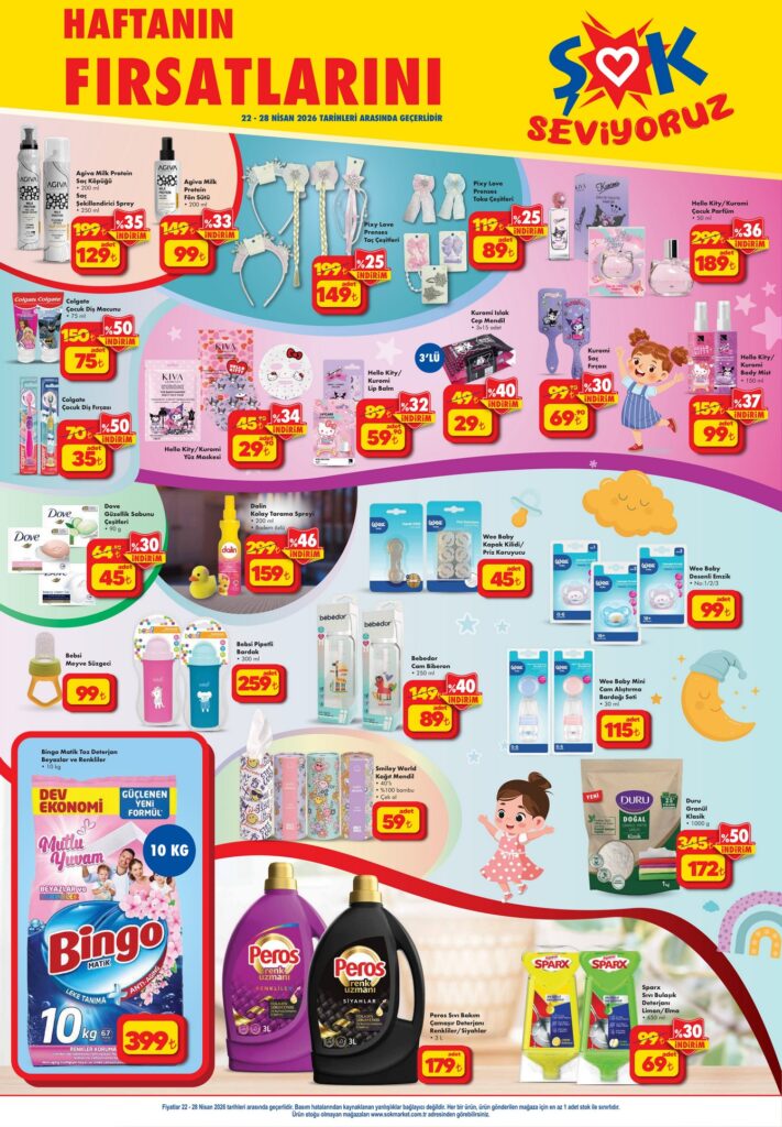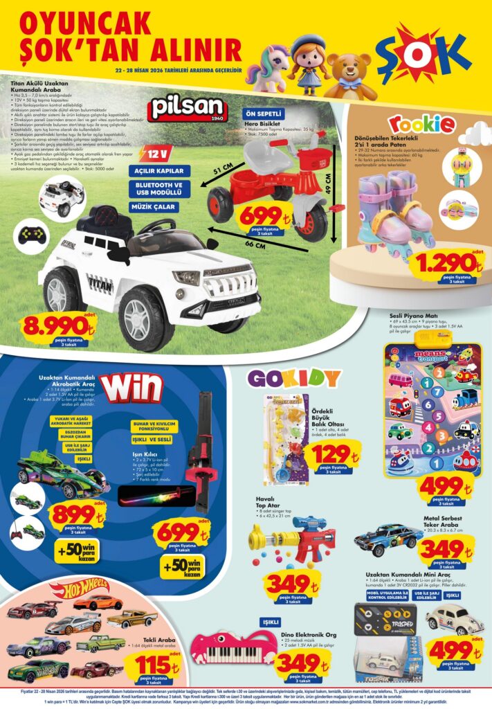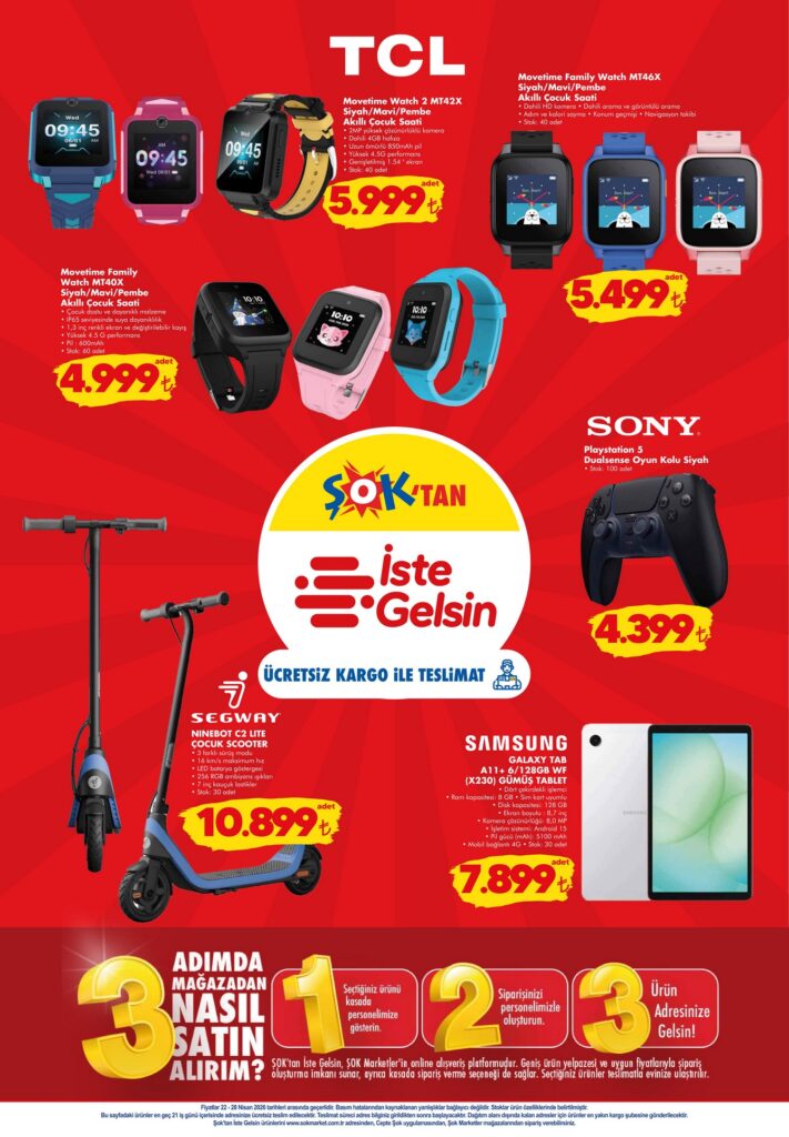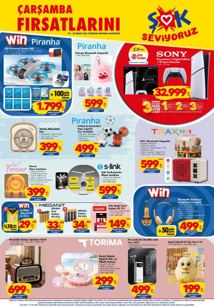 ŞOK 22-28 Nisan 2026 aktüel kataloğunda bu hafta; temel gıda ürünleri, PlayStation 5, akıllı telefonlar, temizlik malzemeleri ve çocuk oyuncaklarında dev fırsatlar var! Haftanın indirimli fiyat listesini ve kampanyalı ürünleri inceleyin.