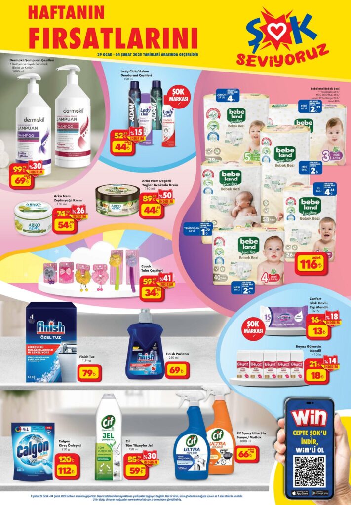 ŞOK, 29 Ocak – 4 Şubat 2025 tarihleri arasında temizlik ürünlerinden gıda ve kişisel bakıma kadar birçok kategoride büyük indirimlerle müşterilerini bekliyor.
