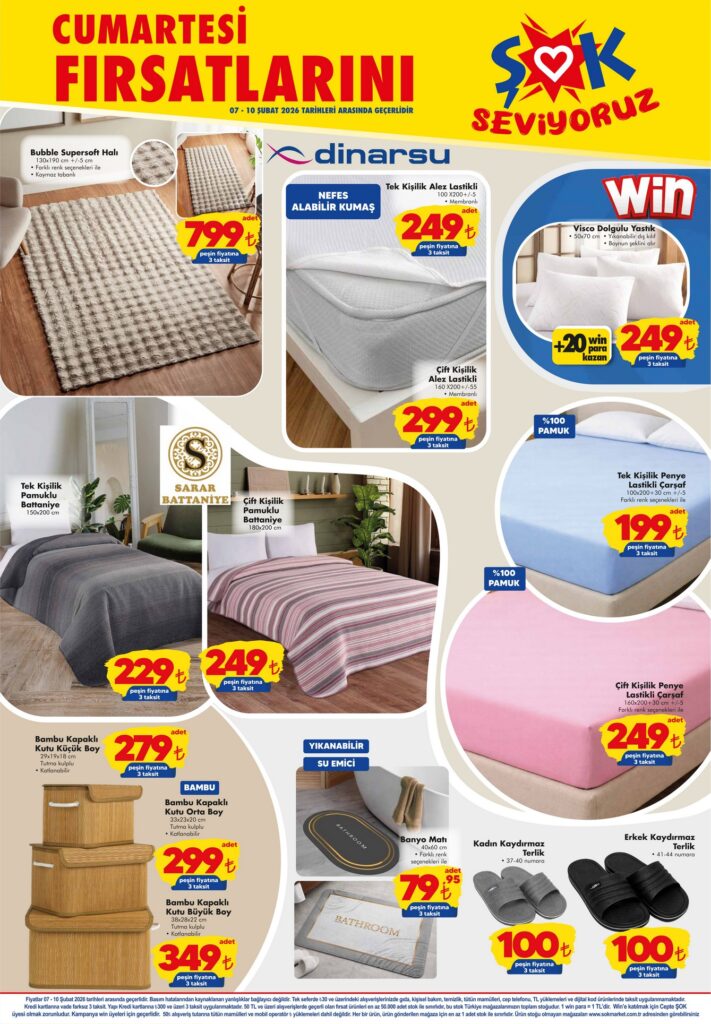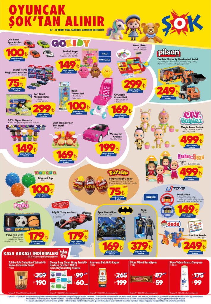 ŞOK 7-10 Şubat 2026 hafta sonu aktüel ürünler kataloğu yayınlandı! Bu hafta ŞOK’ta evinizin havasını değiştirecek Dinarsu alez, Sarar battaniye ve bambu düzenleyicilerde büyük indirimler var. Ayrıca çocukları sevindirecek Gokidy ve Pilsan oyuncak çeşitleri, 25 TL üzeri alışverişlerde geçerli Tchibo kahve ve kişisel bakım fırsatlarını hemen inceleyin.