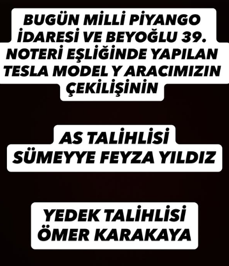 - Çekiliş Yeri: Yamanlar Bağımsız Oto Ekspertiz (Küçükçekmece / İstanbul)